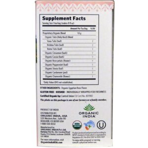 Organic India, Chá de Tulsi, Manjericão sagrado do Brasil, sem cafeína, canela rosa, 18 sacos de infusão, 1.14 oz (32,4 g)