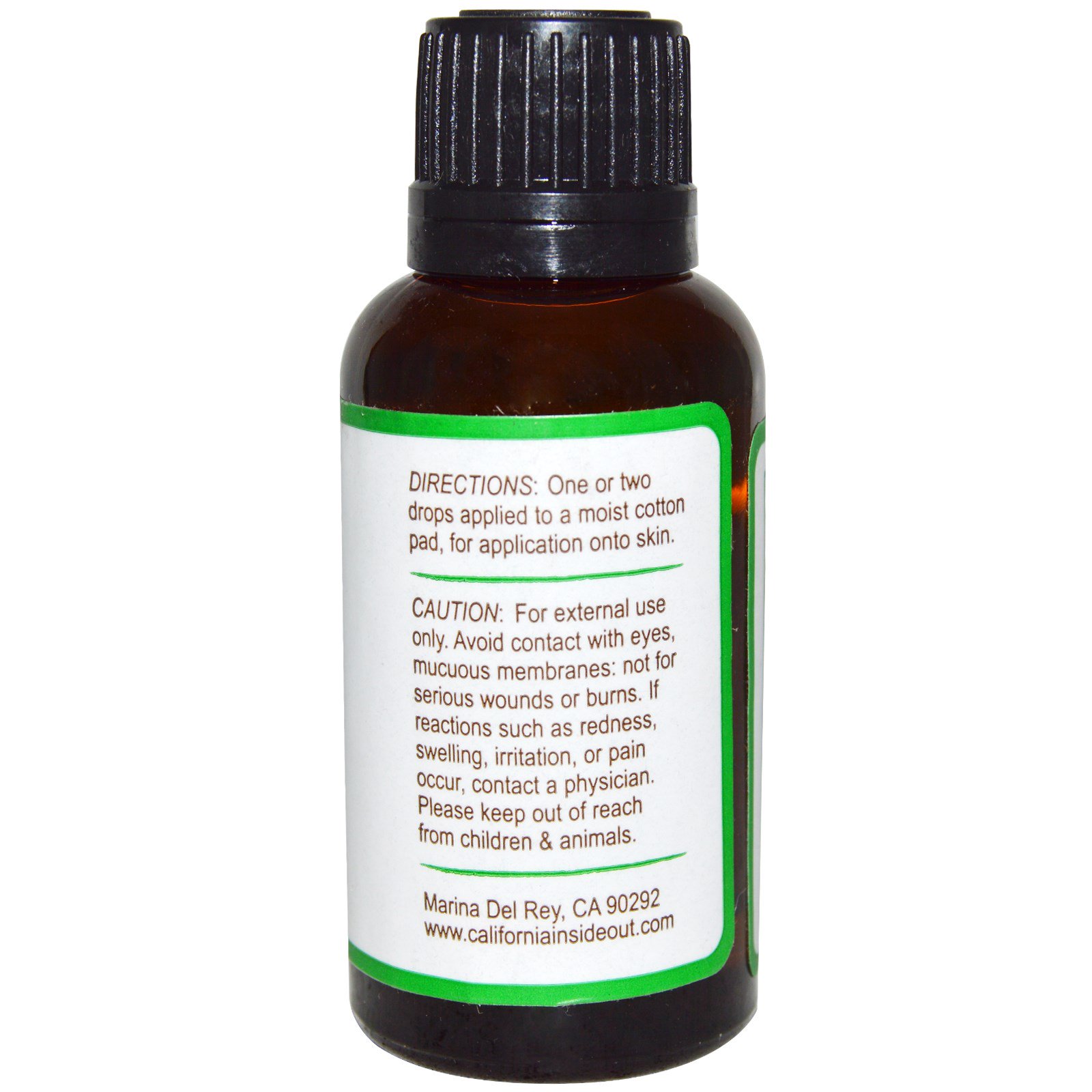 Directions: One or two drops applied to a moist cotton pad, for application onto skin.