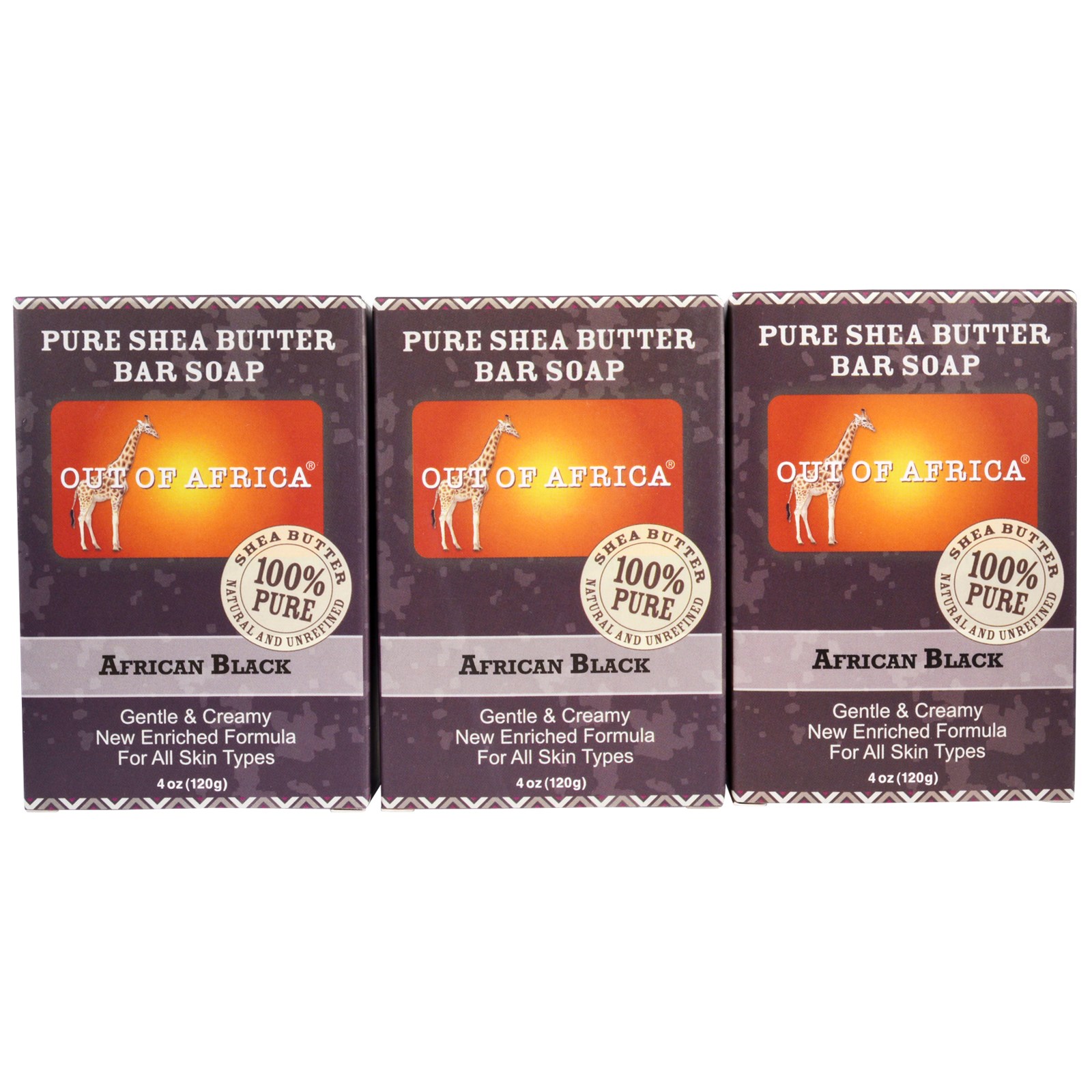 Out of Africa, Sabonete em Barra Manteiga de Karité, Africano Preto, 3 Barras, 120 g cada