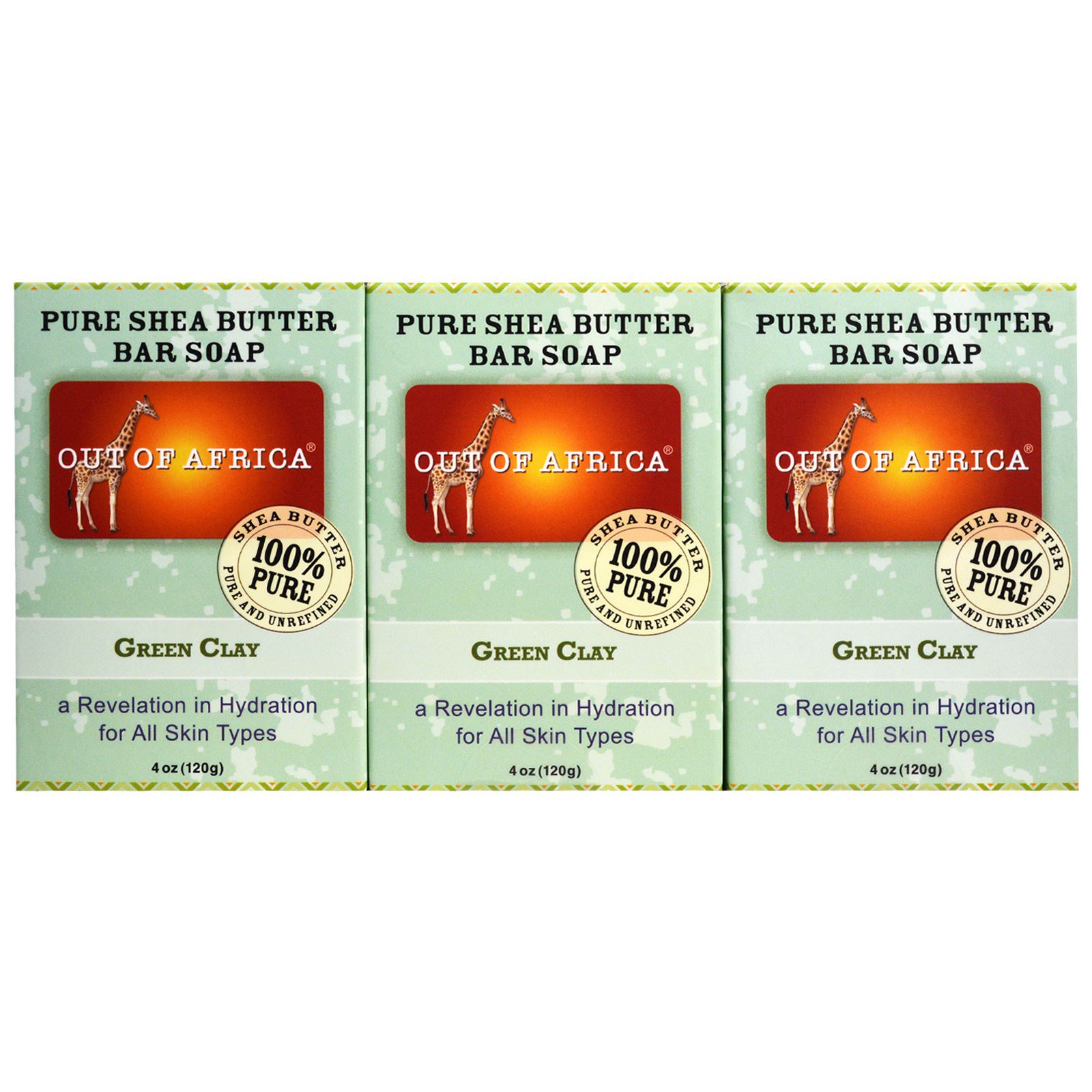 Out of Africa, Sabonete em Barra Manteiga de Karité, Argila Verde, 3 Unidades, 120 g cada