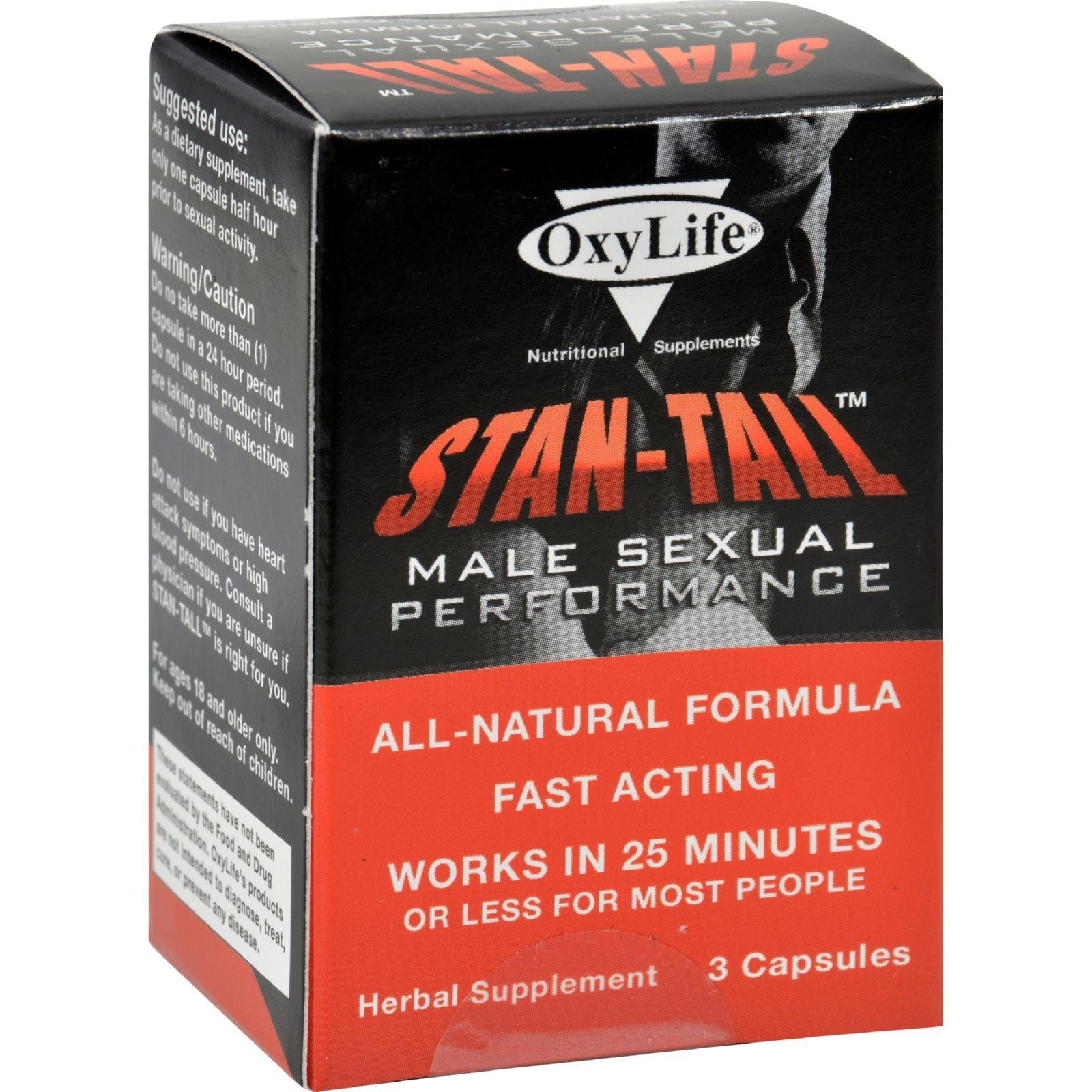Oxylife Stan-Tall Male Sexual Performance Description: ALL-NATURAL FORMULA FAST ACTING WORKS IN 25 MINUTES or Less For Most People Herbal Supplement Disclaimer These statements have not been evaluated by the FDA. These products are not intended to diagnose, treat, cure, or prevent any disease.