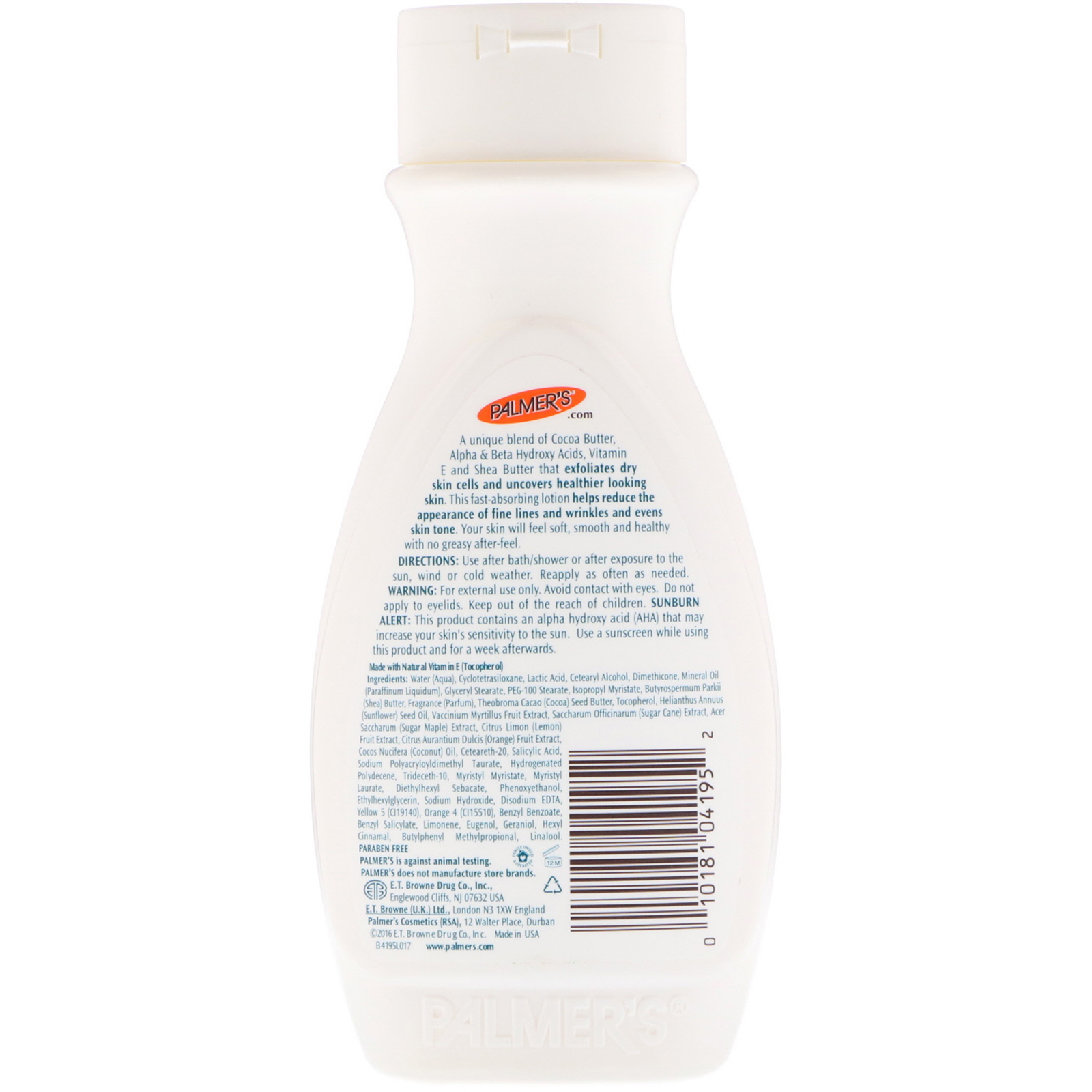 A unique blend of Cocoa Butter, Alpha & Beta Hydroxy Acids, Vitamin E and Shea Butter that exfoliates dry skin cells and uncovers healthier looking skin. This fast-absorbing lotion helps reduce the appearance of fine lines and wrinkles and evens skin tone. Your skin will feel soft, smooth and healthy with no greasy after-feel.