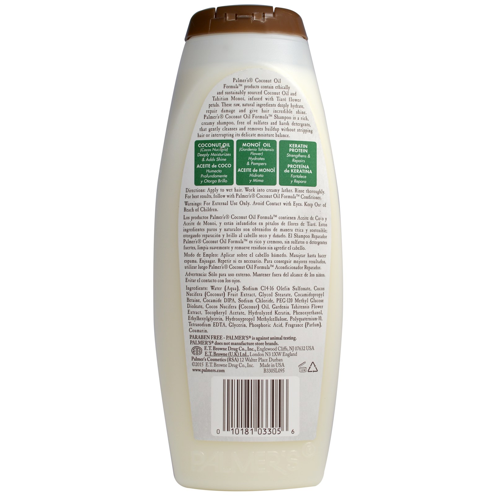 Os produtos de Fórmula de óleo de coco da Palmer’s contém óleo de coco e monoi taitiano obtidos de forma ética e sustentável, infundidos com pétalas de flores de Tiaré. Estes ingredientes puros e naturais hidratam profundamente, reparam danos e dão ao cabelo um brilho incrível. O xampu de fórmula de óleo de coco da Palmer’s é um xampu cremoso, rico, livre de sulfatos e detergentes agressivos, que limpa suavemente e remove acúmulos sem remoção de cabelos ou interrupção do seu delicado equilíbrio de hidratação.