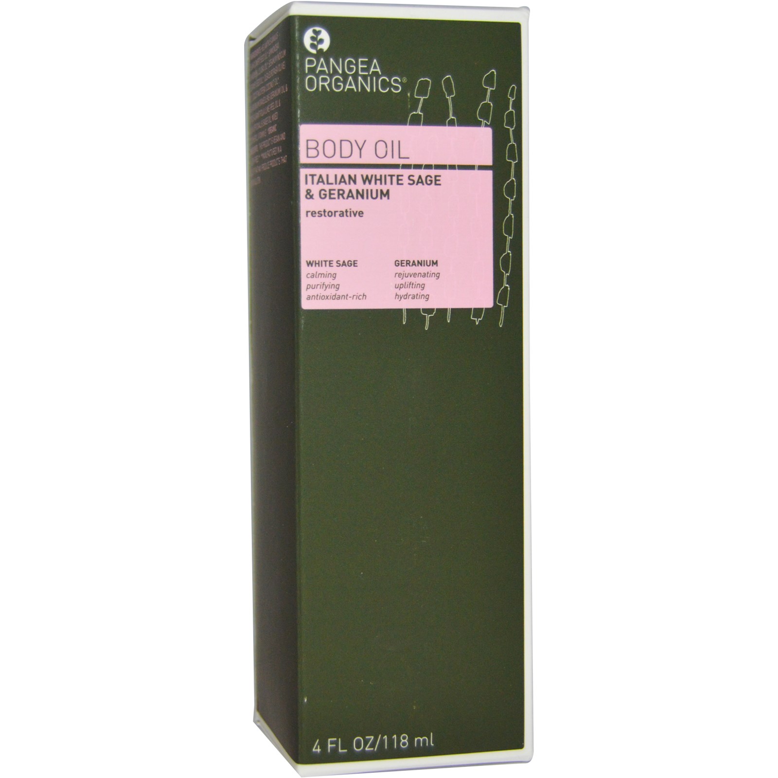 Pangea Organics, Óleo Corporal, Sálvia Branca Italiana e Gerânio, frasco de 4 oz (118 ml)