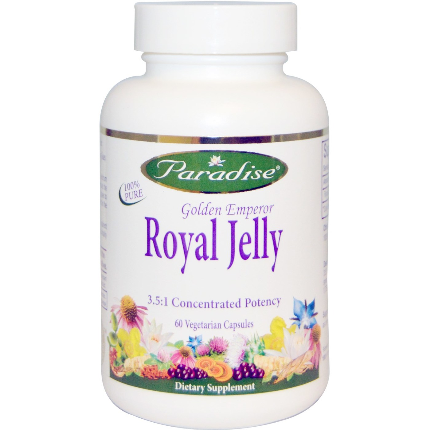 Golden Emperor Royal Jelly Extract from Paradise Herbs contains a 3.5:1 concentrated potency.