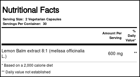 Lemon Balm from Paradise Herbs contains 600 mg of Lemon Balm extract in each serving.