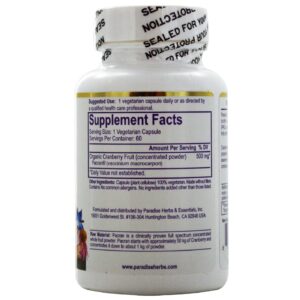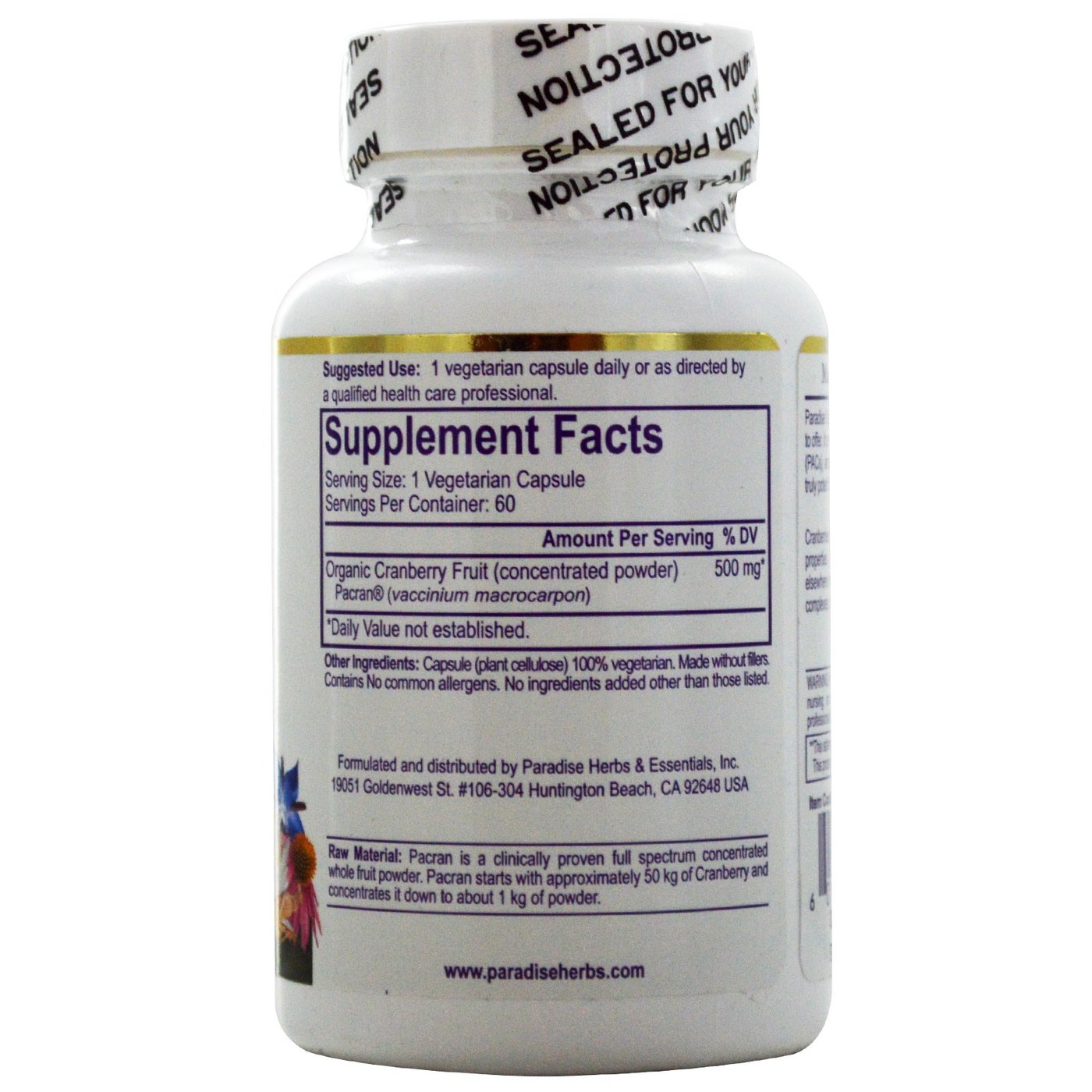 Organic Cranberry Pacran from Paradise Herbs contains cranberry that is derived from concentrated powder.
