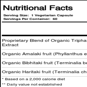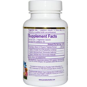 Paradise Herbs Organic Triphala Extract features a proprietary blend containing Amalaki fruit, Bibhitaki fruit and Haritaki fruit blended together.