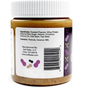 o further for the end to your cravings, Buff Bake gives you Cinnamon Raisin Protein Peanut Spread.