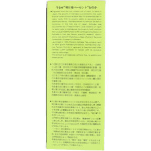 Launchead in 1989, Percent Ashitaba Tea contains Hachi Jo Island grown Ashitaba provided by Ashitaba Manufacture Factory, Co., Ltd. in Japan, and is manufactured under certified CGMP authority in Taiwan with its exclusive roasting technology.