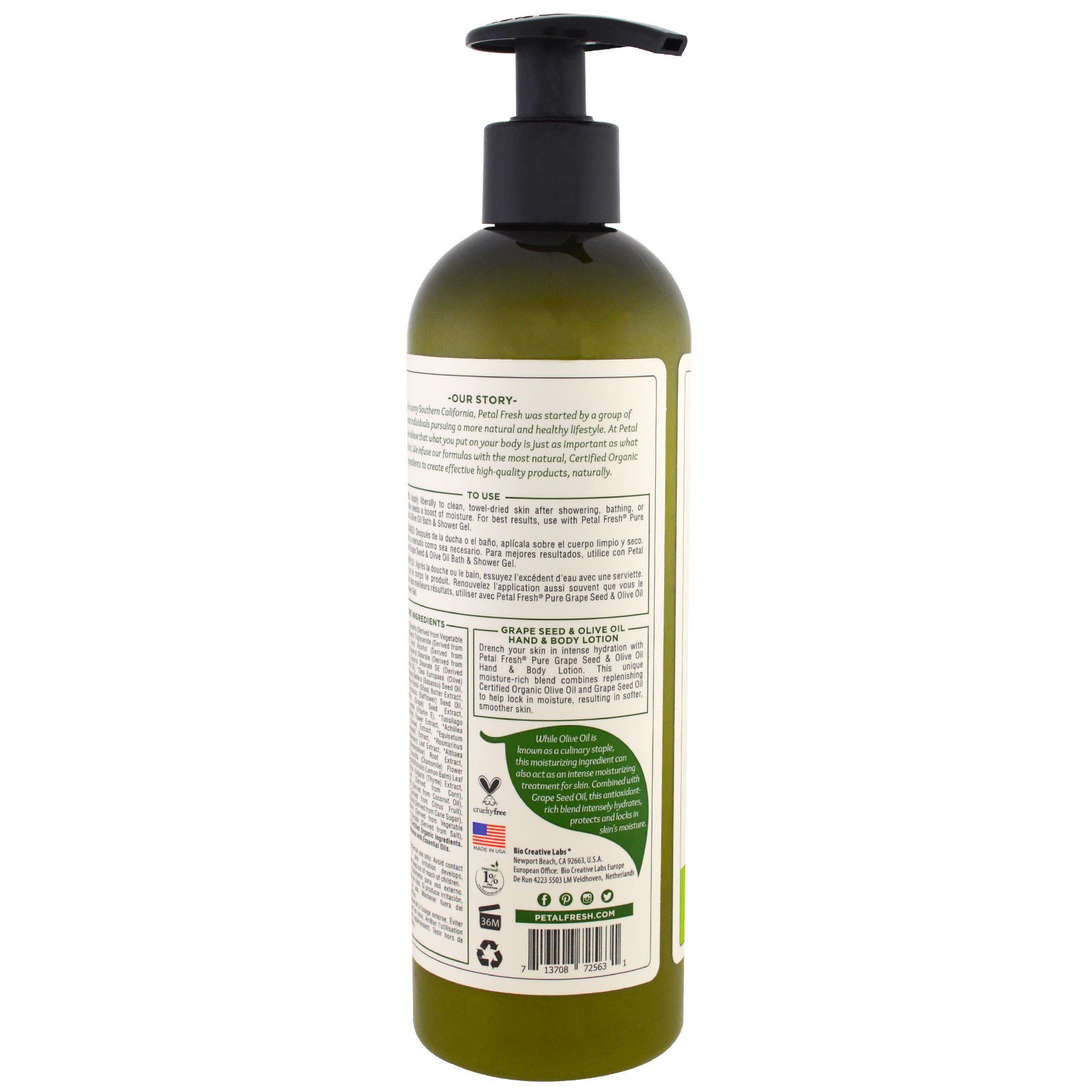 Petal Fresh, Loção Hidratante para Mãos e Corpo, Pura, Óleo de semente de Uva e Oliva, 12 fl oz (355 ml)