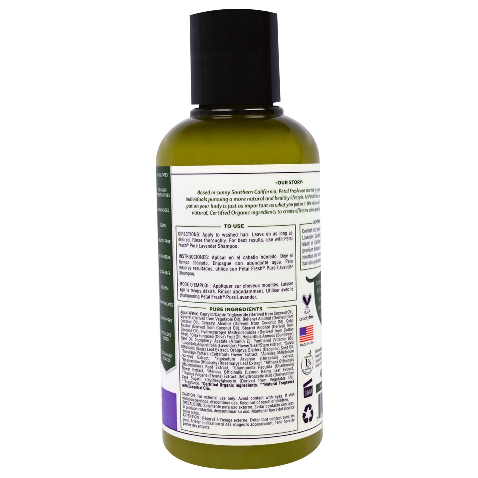 Apply to washed hair. Leave on as long as desired. Rinse thoroughly. For best results, use with Petal Fresh Pure Lavender Shampoo.