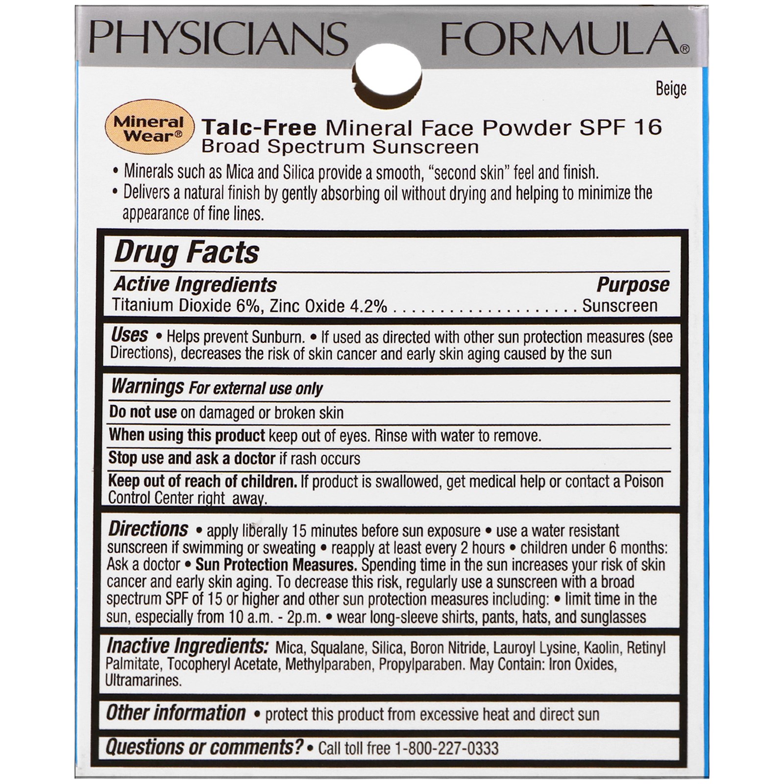 Physician's Formula, Inc., Mineral Wear, Pó Facial, Bege, SPF 16, 0,3 oz (9 g)