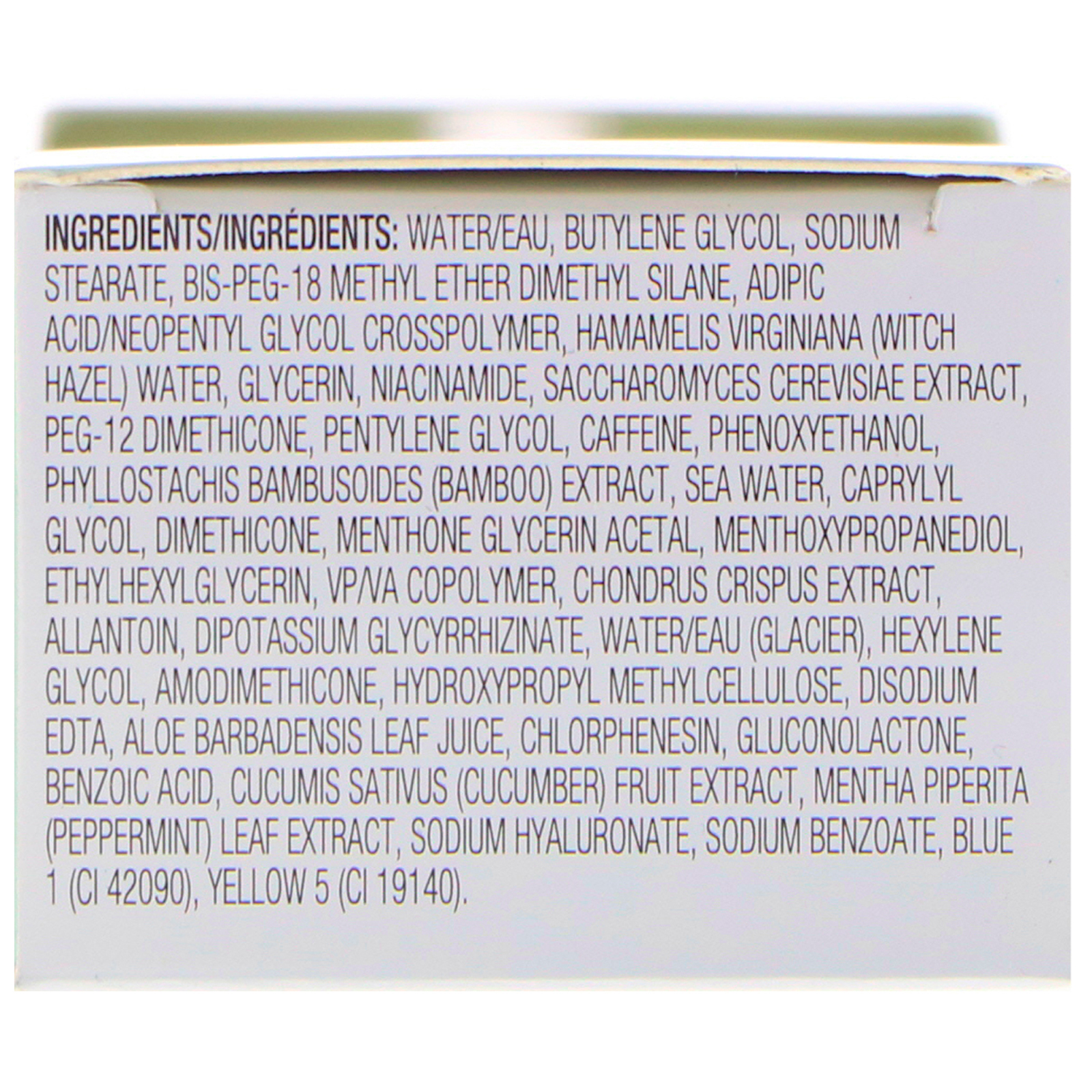 A skin-nourishing blend of green ingredients: Peppermint, Cucumber, and Aloe Vera and other ingredients cool skin to visibly reduce the appearance of tired eyes, while hydrating Bamboo Shoot and Glacial Mineral Water refresh skin.
