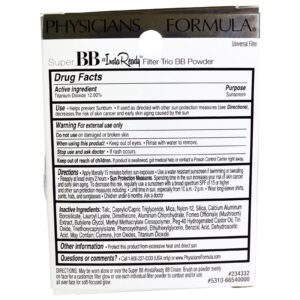Physician's Formula, Inc., Super BB #ProntaProInstagram, Trio de Filtros, Pó BB, FPS 30, Filtro Universal, 0,38 oz (11 g)