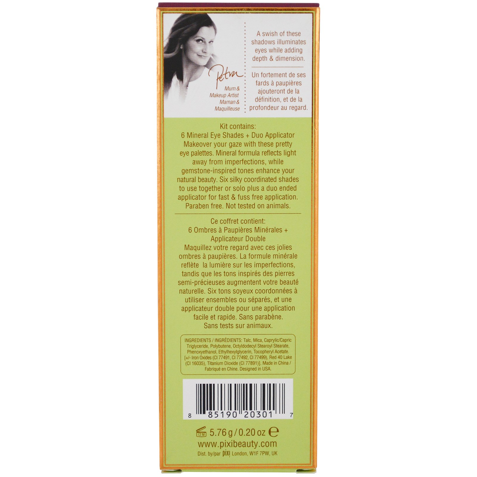 Kit contains: 6 mineral eye shades + duo applicator makeover your gaze with these pretty eye palettes. Mineral formula reflects light away from imperfections, while gemstone-inspired tones enhance your natural beauty. Six silky coordinated shades to use together or solo plus a duo ended applicator for fast & fuss free application. Paraben free. Not tested on animals.