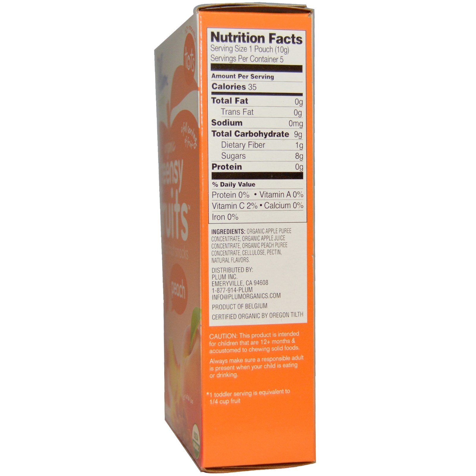 Plum Organics, Bebês, Teensy Fruits, Pêssego, 5 pacotes de 10 g cada