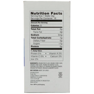 Farinha de arroz orgânica, farinha de milho orgânica, açúcar de cana orgânico, farinha de trigo sarraceno orgânica, contém menos de 2% de pó orgânico de mirtilo, pó de figo orgânico, sabor orgânico de mirtilo.