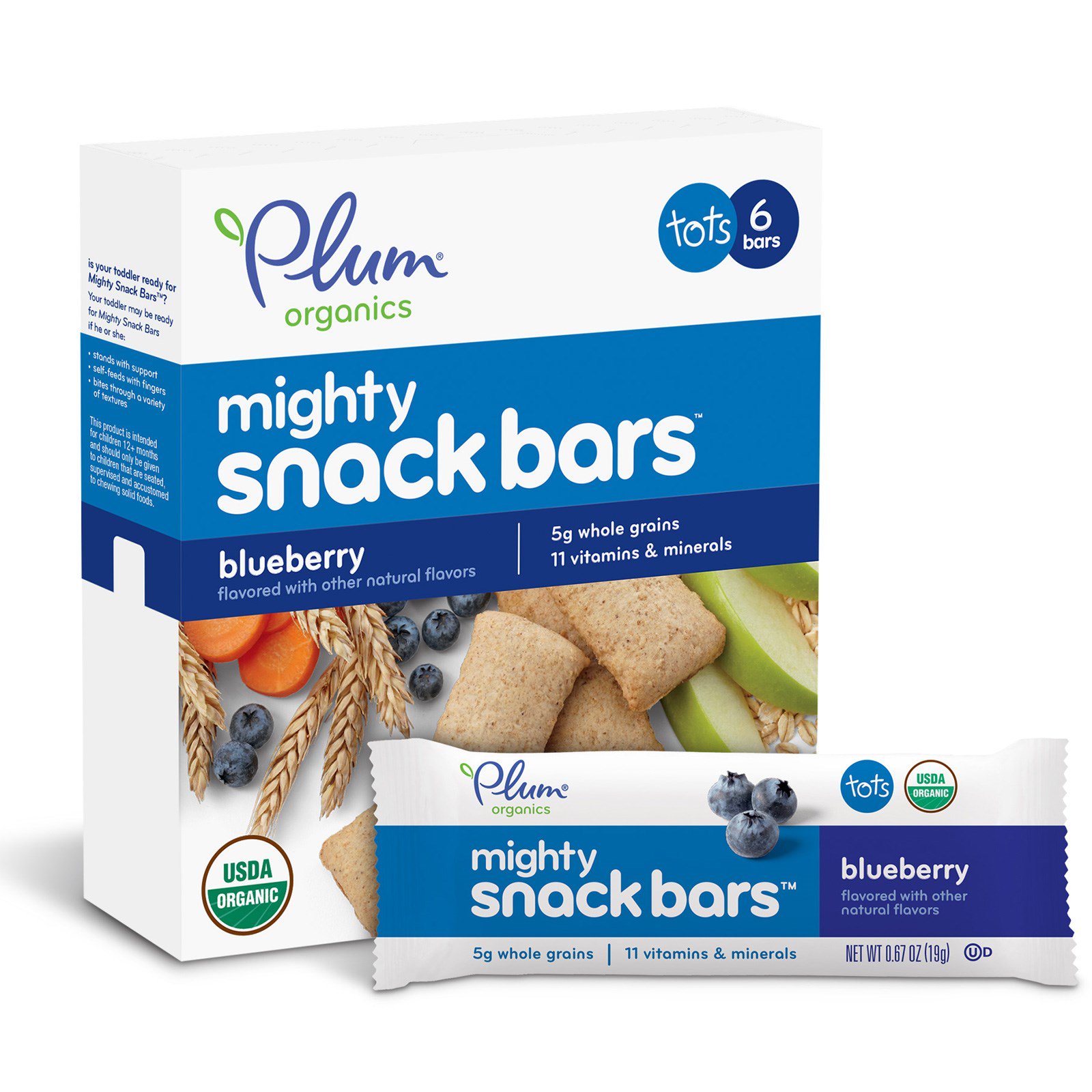 Plum Organics, Poderosas Barras Energéticas, Mirtilo, 6 Barras, 0,67 oz (19 g) Cada