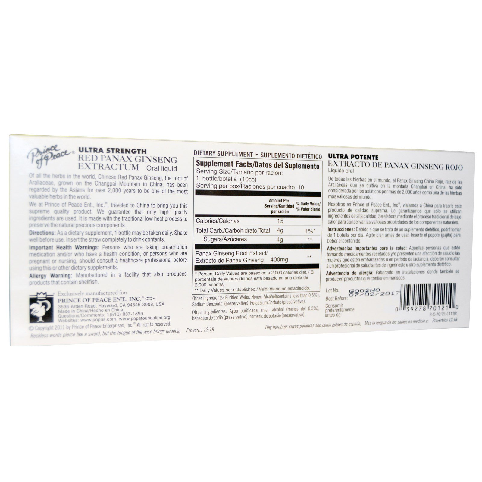 Prince of Peace, Extrato de Ginseng Vermelho, Extra Forte, 10 Garrafas, 0,34 fl oz (10 cc) Cada