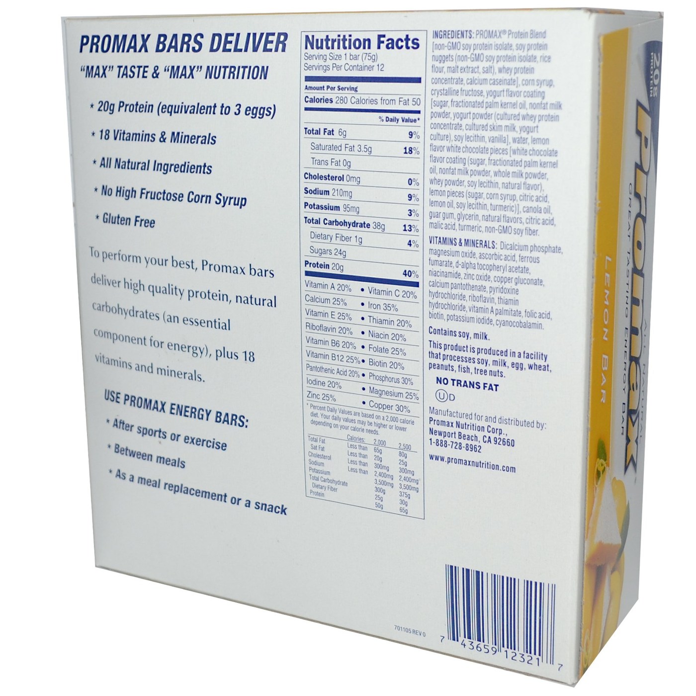 Promax Nutrition Energia Bar Limão Bar 12-2,64 onça (75 g) as barras [31,68 oz (900 g)]