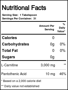 Recomendações de uso: As a dietary supplement consume one tablespoon of L-Carnitine twice daily or as directed by a physician or licensed nutritionist, you may also mix with your favorite juice or beverage.