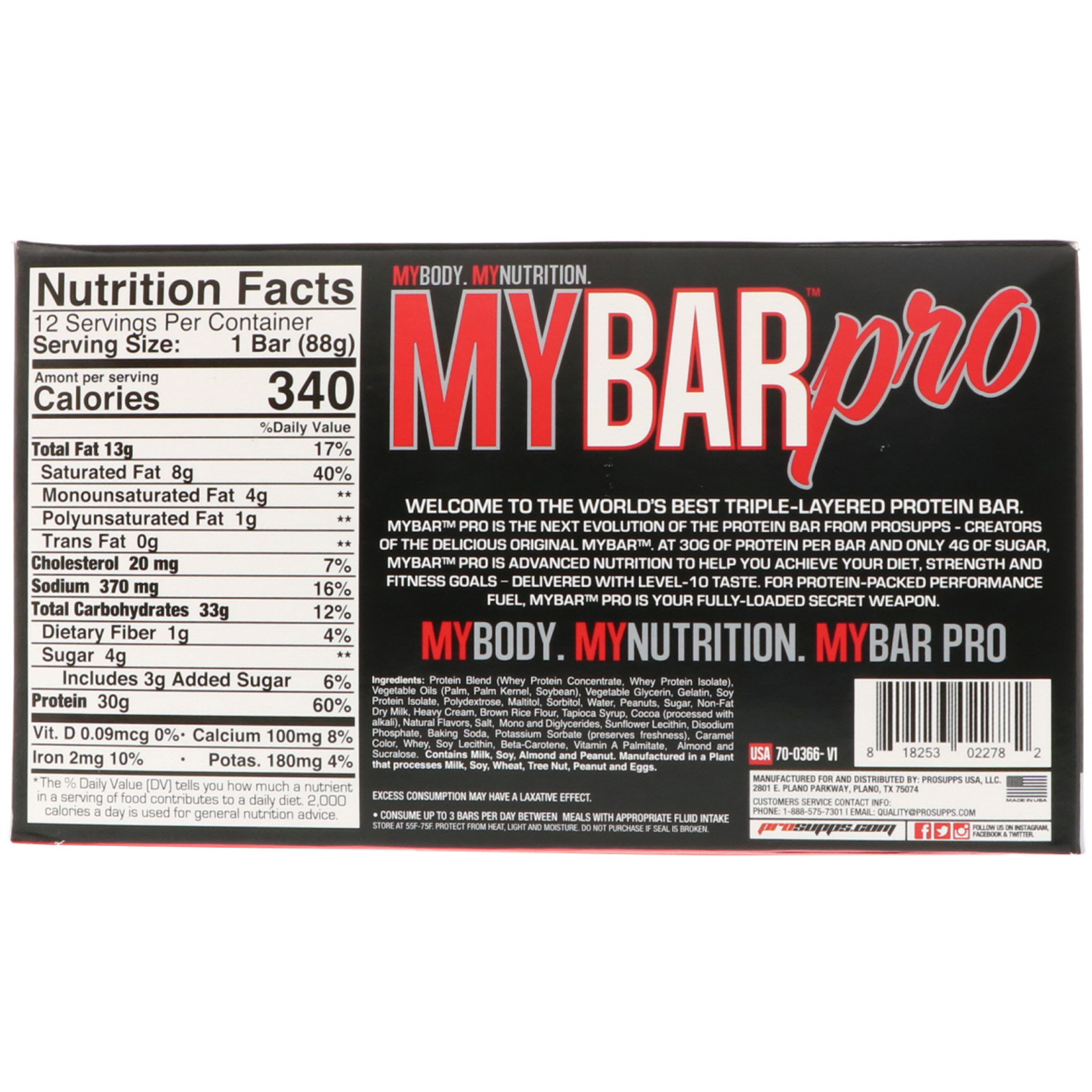 Welcome to the world’s best triple-layered protein bar. MyBar Pro is the next evolution of the protein bar from ProSupps – creators of the delicious original MyBar. At 30 g of protein per bar and only 4 g of sugar, MyBar Pro is advanced nutrition to help you achieve your diet, strength and fitness goals – delivered with level-10 taste. For protein-packed performance fuel, MyBar Pro is your fully-loaded secret weapon.