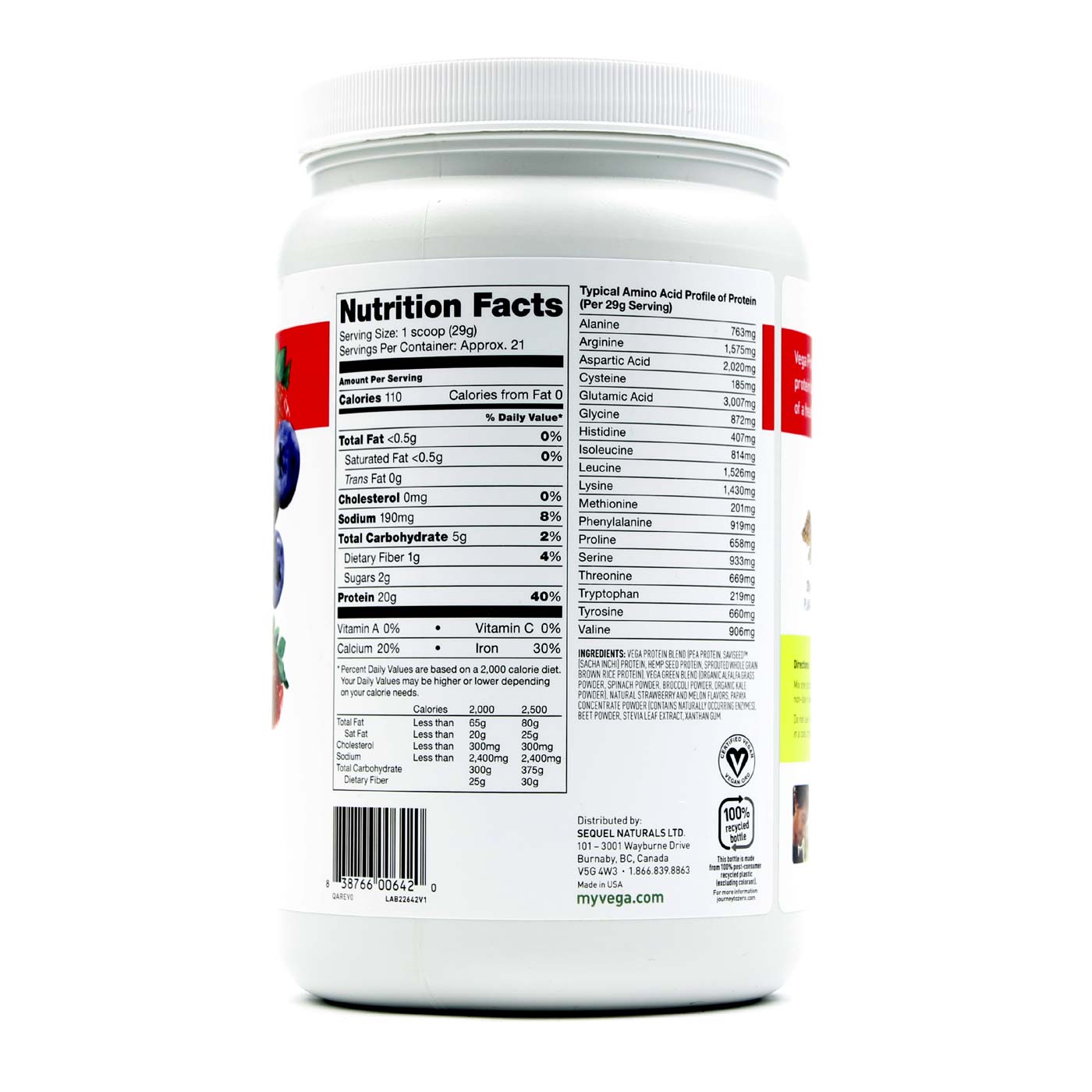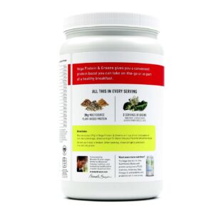 e Vega Protein & Greens is created with ingredients like sprouted whole grain brown rice, pea, kelp and SaviSeed protein to give you 20 grams of complete protein and a balanced amino acid complex.