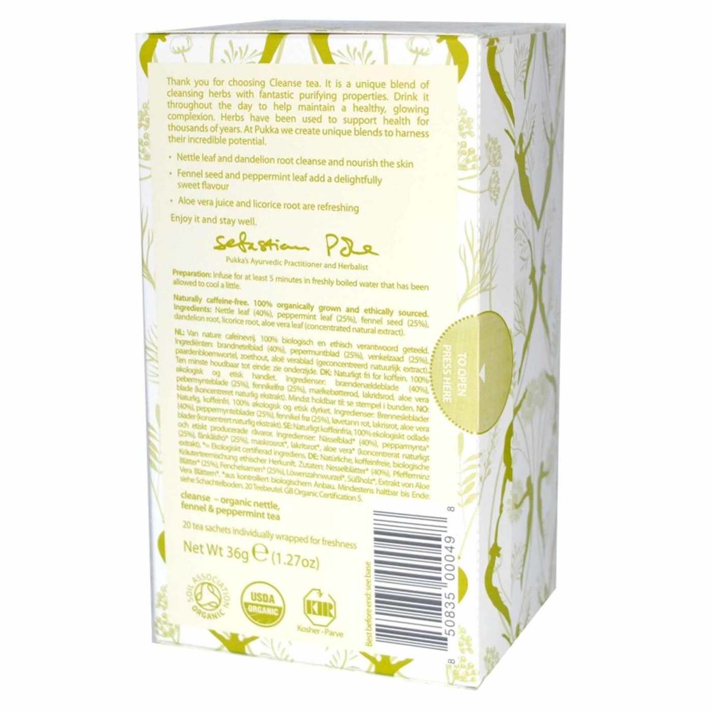 bs Herbal Tea Cleanse with organic nettle, fennel and peppermint brings out your inner beauty. Beauty comes from within and so it is with skin. It’s why drinking water is such an important part of keeping ourselves looking good. This is a tea to help you sparkle and glow. Filled with organic herbal goodness, years of wisdom from Master Herbsmith Sebastian Pole and fresh with nature’s green riches: Cleanse tea has FairWild nettle leaf, dandelion root and fennel seed, cooled with peppermint and aloe vera.? It ends with a purifying glow that flows into the sparkle of your eyes and the beauty of your skin.