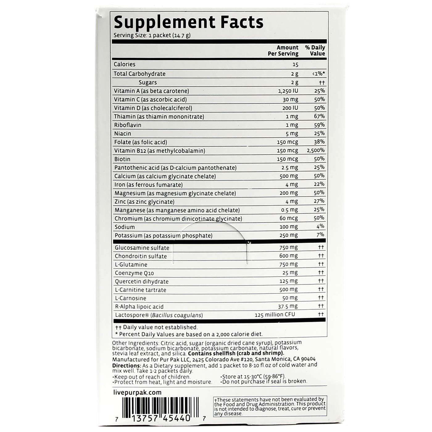 Pur Pak Active Lifestyle Supplement, Citrus – 28 packets