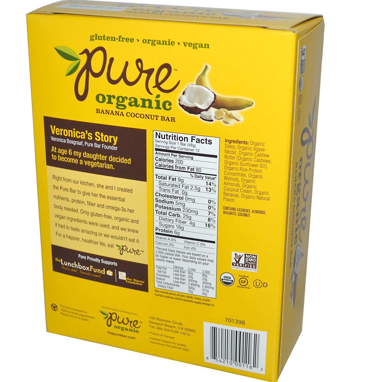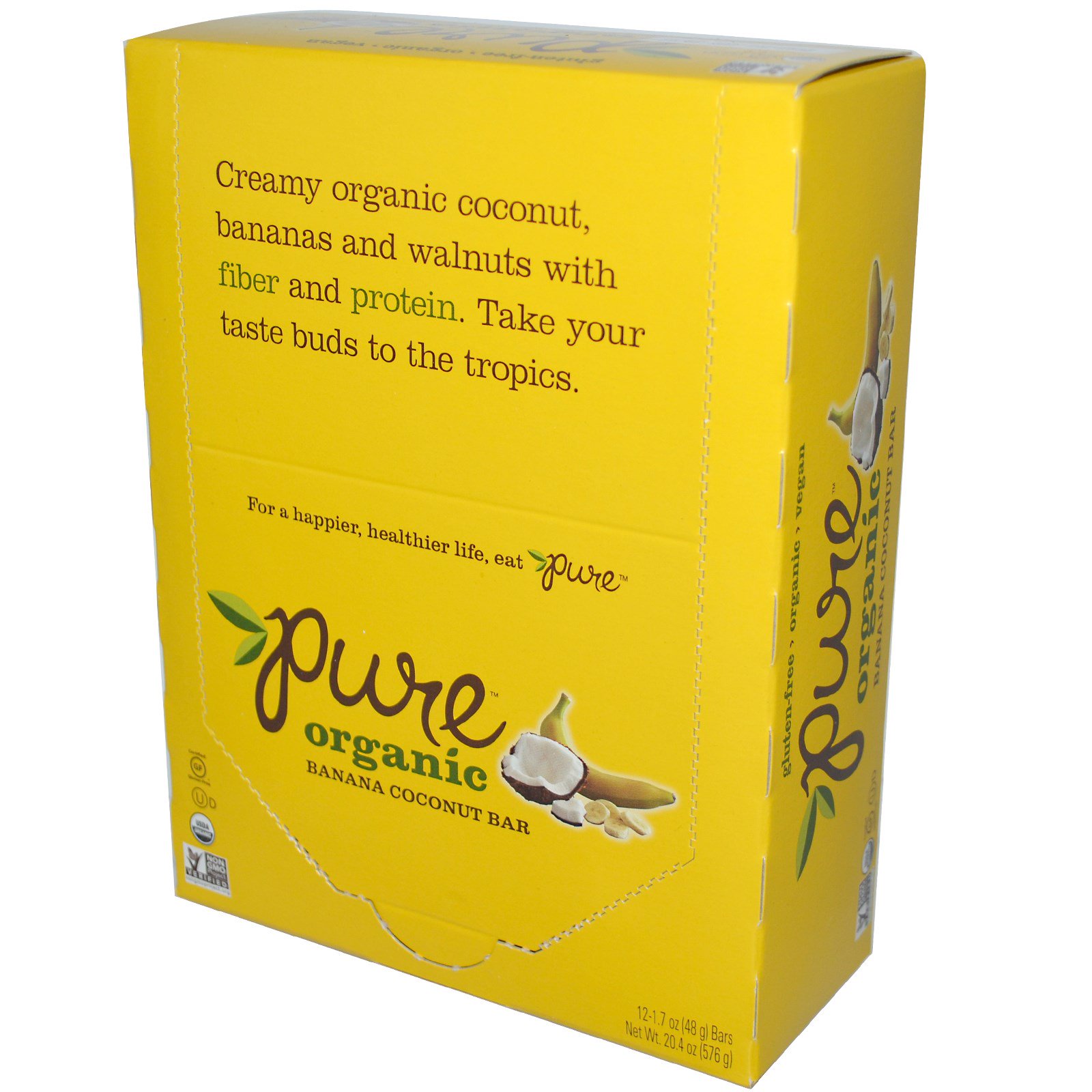 Pure Bar, Orgânico Puro, Barra de Côco com Banana, 12 Barras, 1,7 oz (48 g) Cada