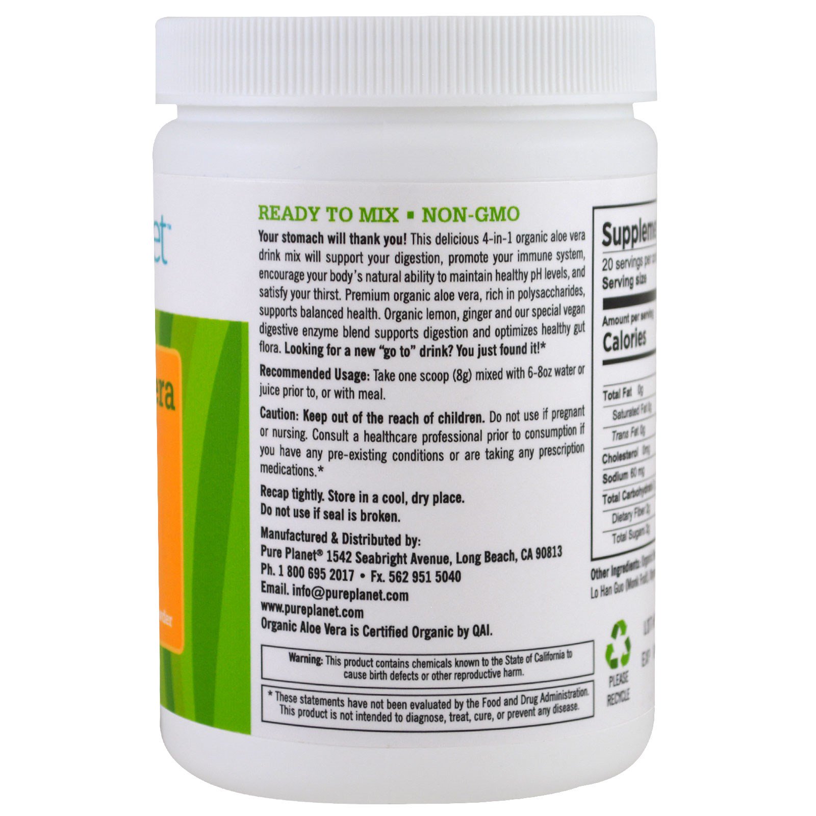 Your Stomach will Thank You! This delicious 4-in-1 organic aloe vera drink mix will support your digestion, promote your immune system, encourage your body’s natural ability to maintain healthy pH levels, and satisfy your thirst. Premium organic aloe vera, rich in polysaccharides, supports balanced health. Organic lemon, ginger and our special vegan digestive enzyme blend supports digestion and optimizes healthy gut flora. Looking for a new "go to" drink? You just found it!