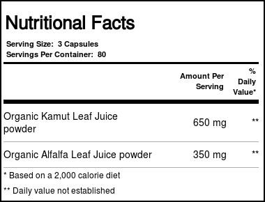 p>Green Kamut Wheatgrass is premium 100% pure, certified organic green food powder! Our non-hybrid guaranteed non-GMO seeds are grown high in the mountains of an ancient volcano lake bed brimming with nutrients, watered with mineral springs and harvested at the peak of nutrition. Green Kamut wheatgrass is processed within minutes at low temperature (86º F) yielding a 100% pure, non pasteurized powder. People who know green food choose Green Kamut wheatgrass!