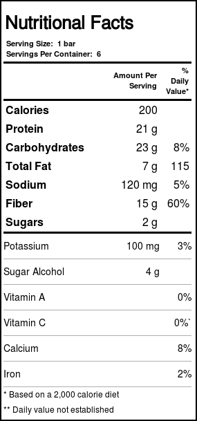 Recomendações de uso: For best results drink 8 fl ounces of water or other liquid with this bar.