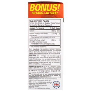 Tome 1 porção(3 comprimidos vegetais fáceis de engolir) duas vezes por dia, 30 a 60 minutos antes da maior refeição. Um terço de porção pode ser adicionado à sua terceira refeição. Para melhores resultados, use por 60 dias em combinação com dieta e exercício com redução de calorias. Leia todo o rótulo antes de usar e siga as instruções fornecidas.
