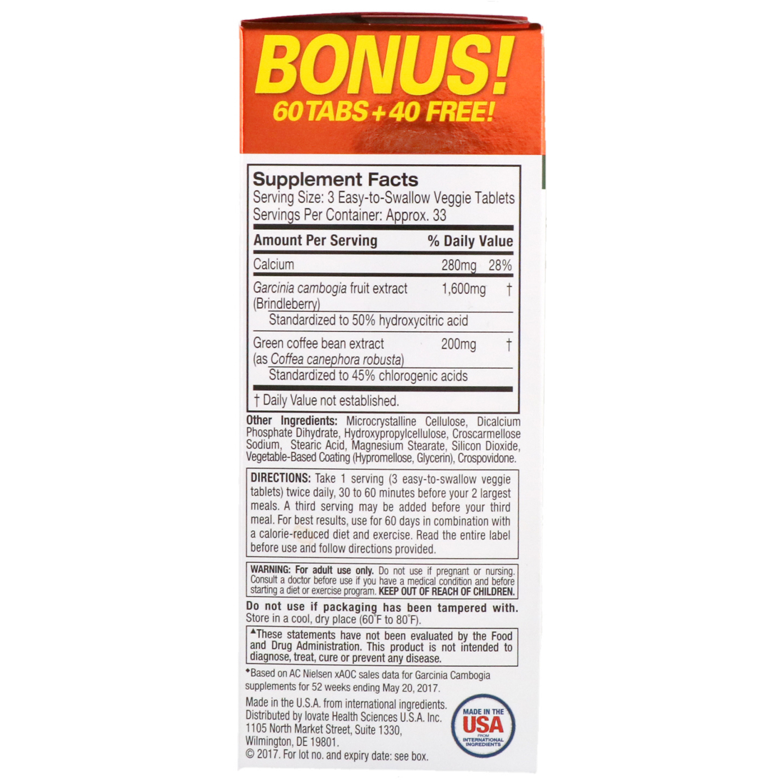 ‡A perda de peso média com o ingrediente principal (200 mg do extrato da semente de café verde) foi de 10,95 lbs (4,96 kg) em um estudo de 60 dias com uma dieta de baixas calorias; e de 3,7 lbs (1,68 kg) em um outro estudo de 8 semanas com uma dieta reduzida em calorias incluindo exercício moderado.