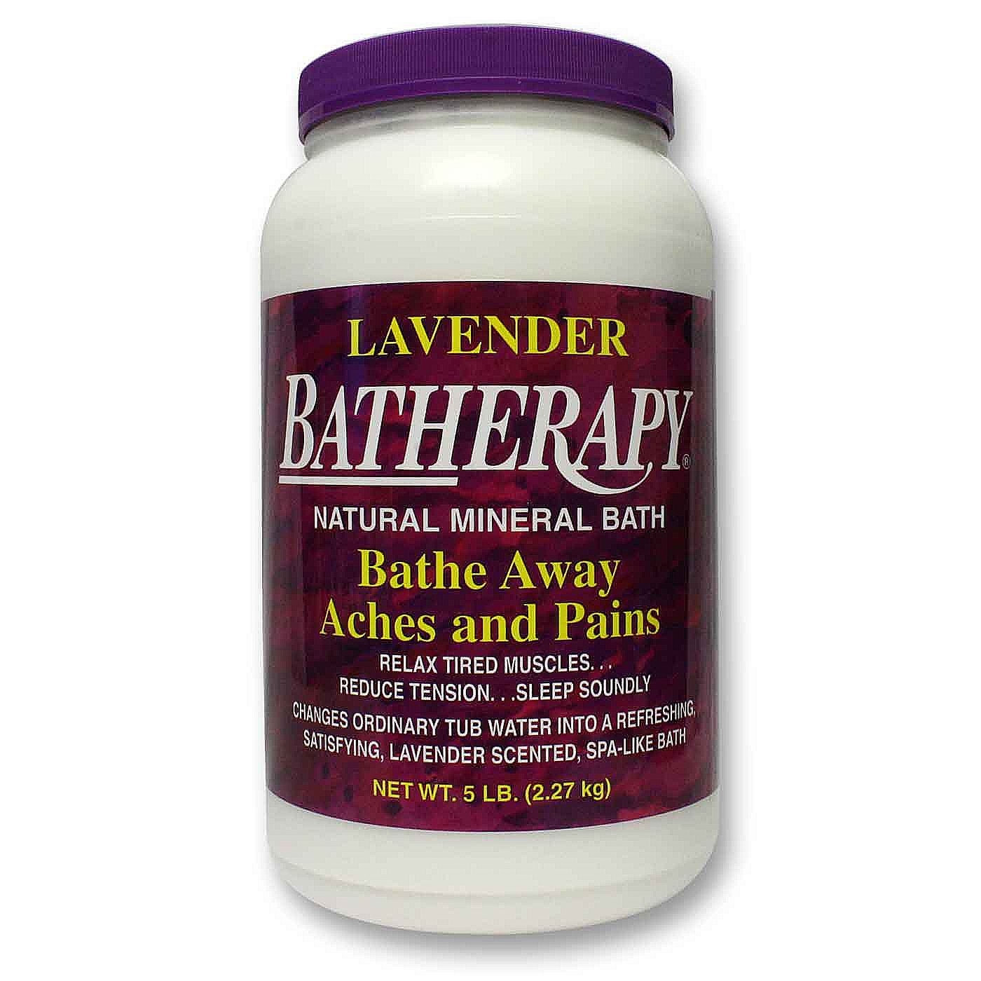 way Aches and Pains. Relax Tired Muscles. Reduce Tension. Sleep Soundly. Lavender Aromatherapy. The aroma of Lavender has a histouy as a relaxant that dates back to the roman Empire. We have combined this Lavender Aromatherapy with our exclusive Batherapy foumula of natural minerals to give you a unique spa-style bath, similar to those found in exclusive hot springs and spas around the would. After you complete your bath, give yourself an extra lift with our Batherapy After Bath Splash.