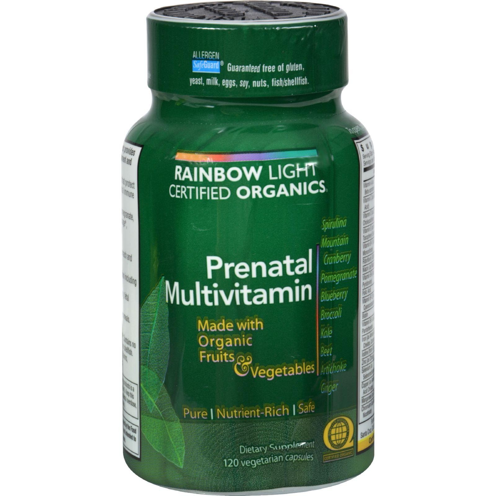 Rainbow Light Certified Organics Prenatal Multivitamin Description: Protects Mother’s Core System Pure, Nutrient-Rich, Safe Supports Vital Immune Resistance and Natural Energy Whole food, certified organic prenatal multivitamin with antioxidants provides comprehensive support for baby’s healthy development and mother’s core immunity and vitality. Free Of Artificial colors, flavors, sweeteners, preservatives, sugar, lactose, gluten, yeast, milk, eggs, soy, nuts, fish/shellfish and wheat. Disclaimer These statements have not been evaluated by the FDA. These products are not intended to diagnose, treat, cure, or prevent any disease.