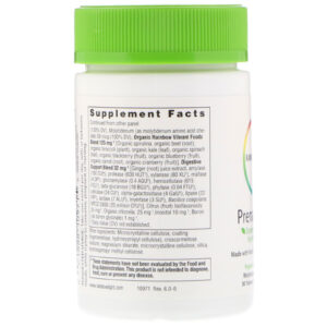 | Mistura de alimentos vibrantes do arco-íris orgânico Spirulina orgânica, beterraba orgânica (raiz), brócolis orgânico (planta), couve orgânica (folha), espinafre orgânico (folha), amora orgânica (fruta), mirtilo orgânico (fruta), cenoura orgânica (raiz), amora orgânica (fruta) |
