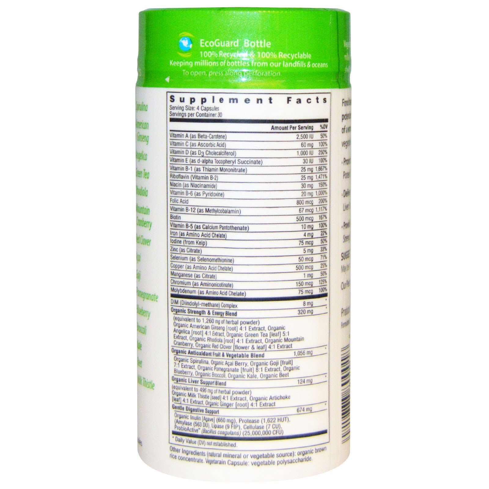 | (equivalente a 1.260 mg de ervas em pó) Ginseng orgânico americano [raiz] Extracto 4: 1, Angélica orgânica [raiz] Extracto 4: 1, chá verde orgânico [folha] Extracto 5: 1, Rhodiola orgânica [raiz] 4: 1 Extracto , Organic Organic Cranberry, Organic Red Clover [flor e folha] 4: 1 Extract | ||