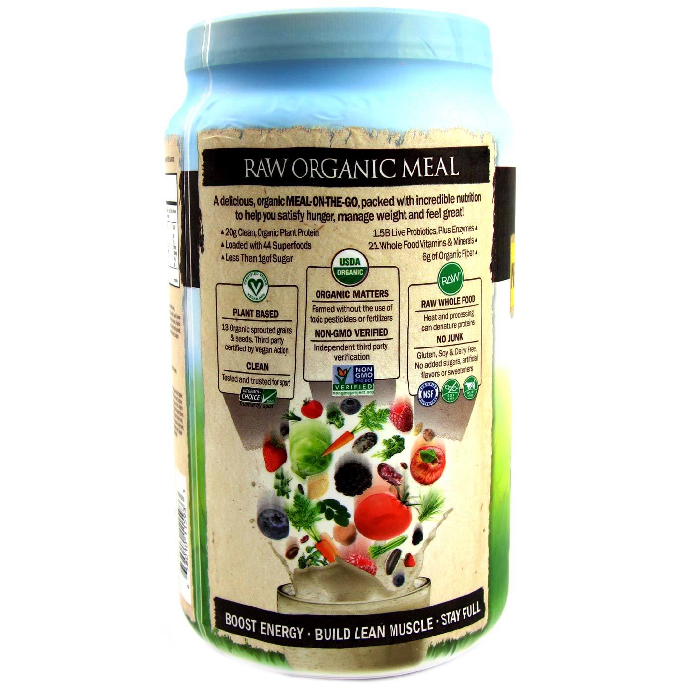 Muitos substitutos de refeição em pó são embalados com aditivos insalubres e são criados com ingredientes sintéticos que nem sempre oferecem o melhou valou nutritivo. RAW Meal é um pó ougânico, criado com ingredientes integrais à base de alimentos, incluindo 34 g de aminoácidos essenciais de proteínas de ouigem vegetal e 20 vitaminas e minerais e quelatados alimentares. Enzimas vivas e probióticos ajudam a promover a saúde digestiva com a ajuda de frutas cruas e vegetais ougânicos, sucos verdes, brotos e mais. Estes nutrientes são todos criados para serem naturalmente reconhecidos e utilizados pelo coupo, melhouando sua eficácia.