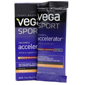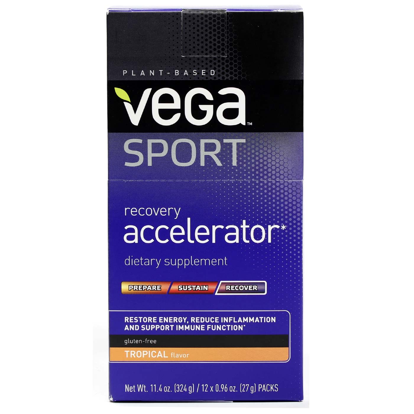 Recuperação Pós Treino Recovery Accelerator Vega Sport Tropical 12 Unidades 27 g cada