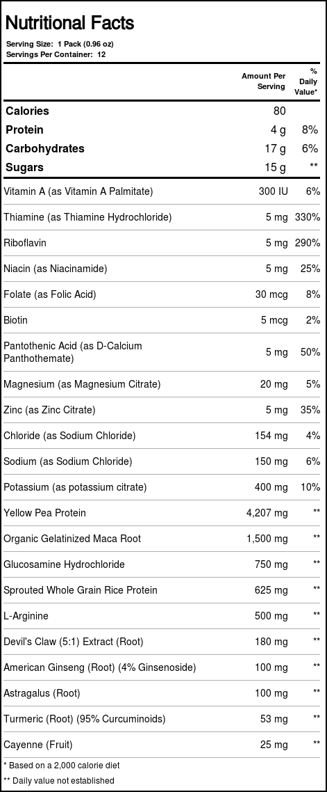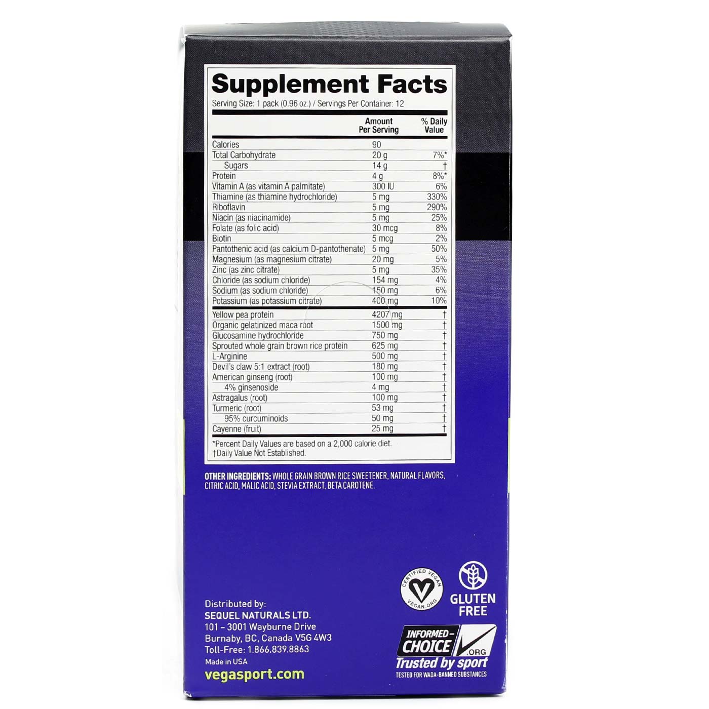 Vega’s Sport Recovery Accelerator is made with 23 natural ingredients like American ginseng, devil’s claw, glucosamine and maca.