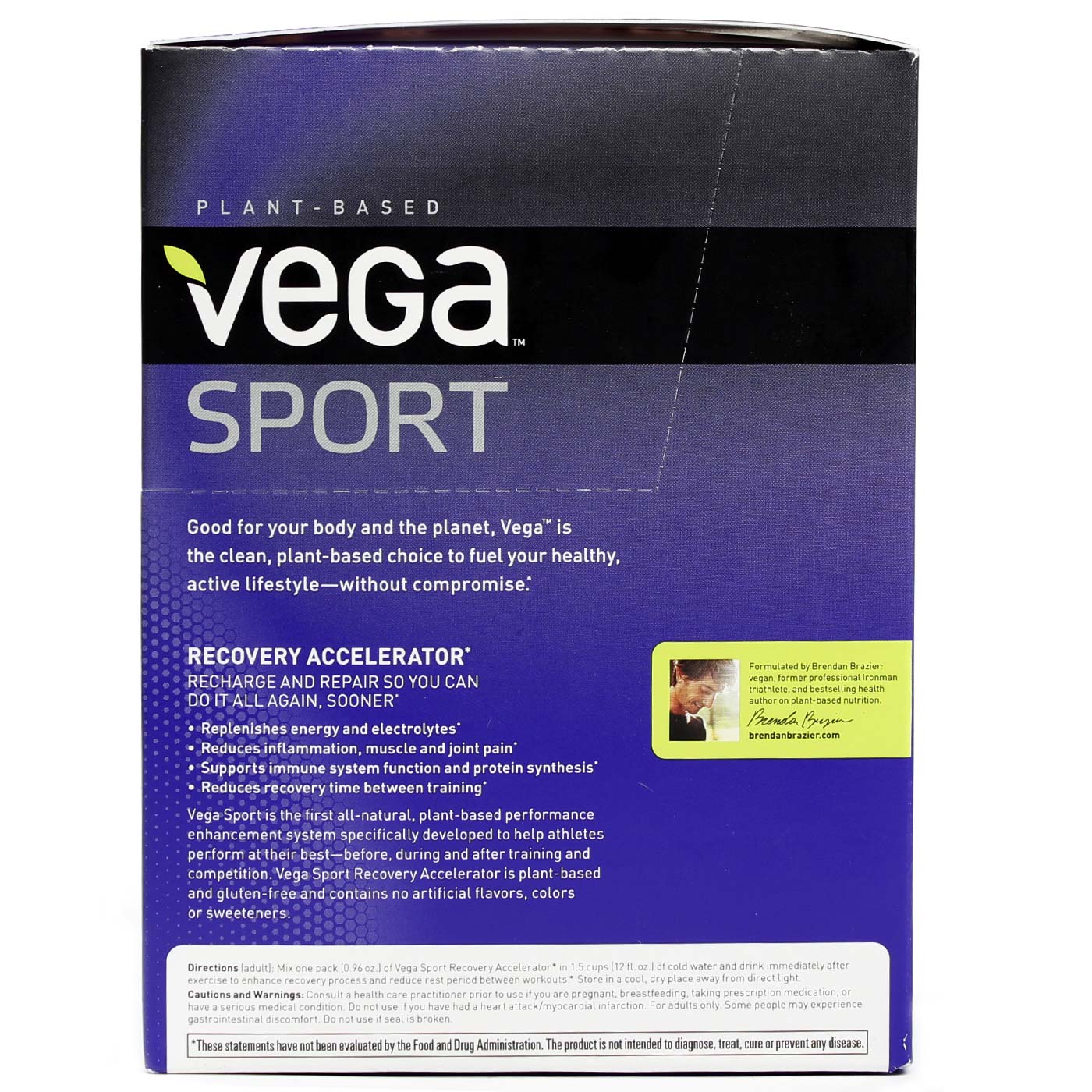Recomendações de uso: Mix one pack (0.96 oz) of Vega Sport Recovery Accelerator in 1.5 cups (12 fl. oz) of cold water and drink immediately after exercise to enhance recovery process and reduce rest period between workouts.