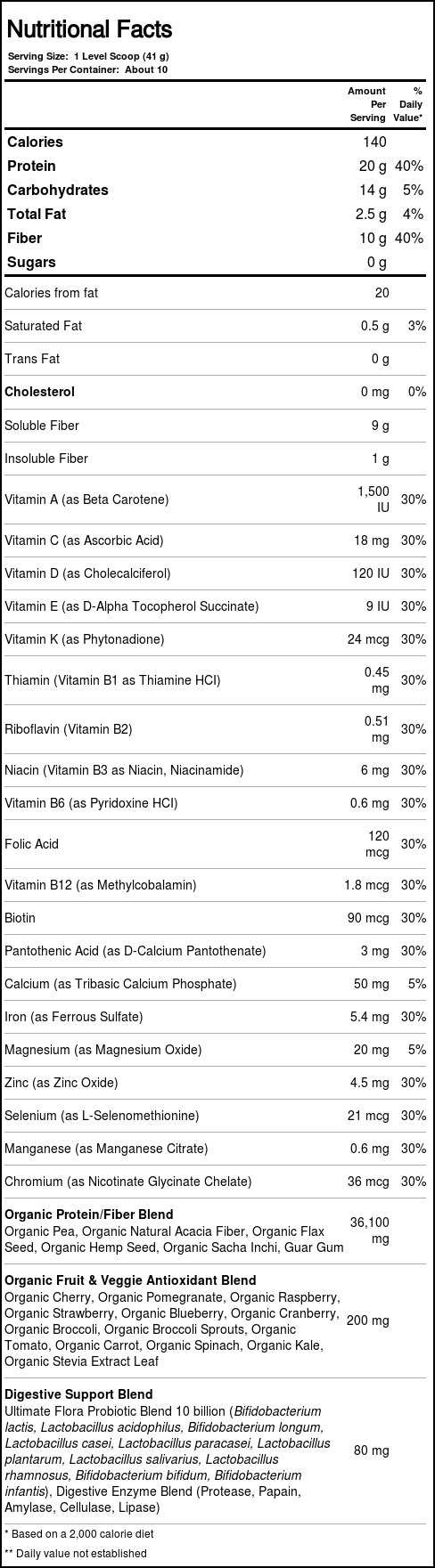 Nota: Livre de GMOs, levedura, glúten, dairy, animal products, fillers, conservantes and artificial ingredients. Stoue in a cool, dry place.