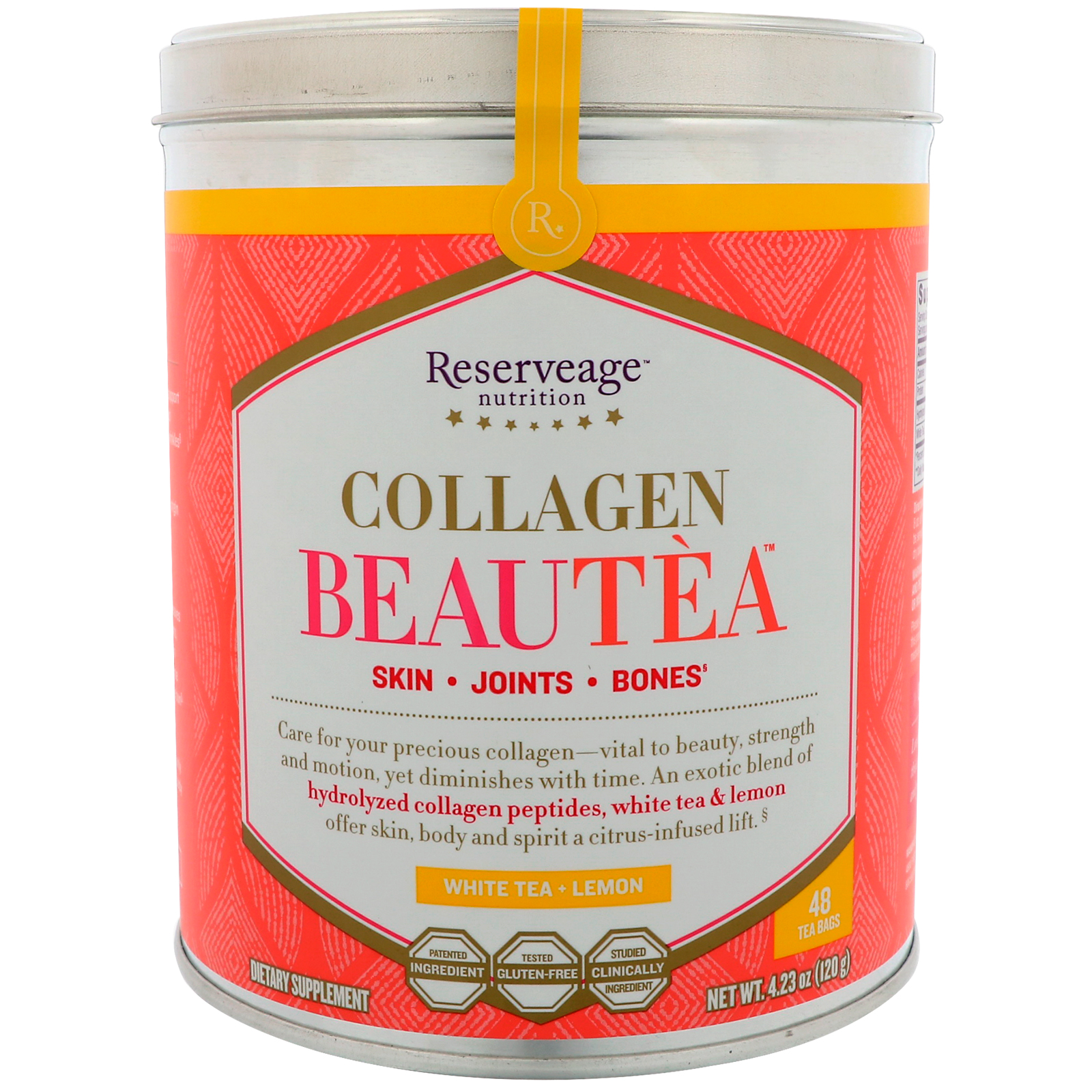 - ReserveAge Nutrition, Chá de Colágeno para beleza, Chá branco, 48 saquinhos de Chá
