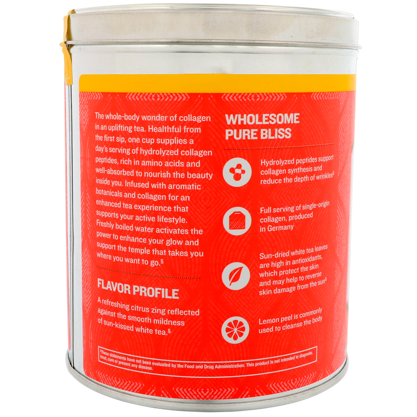 Care for your precious collagen—vital to beauty, strength and motion, yet diminishes with time. An exotic blend of hydrolyzed collagen peptides, white tea & lemon offer skin, body and spirit a citrus-infused lift.