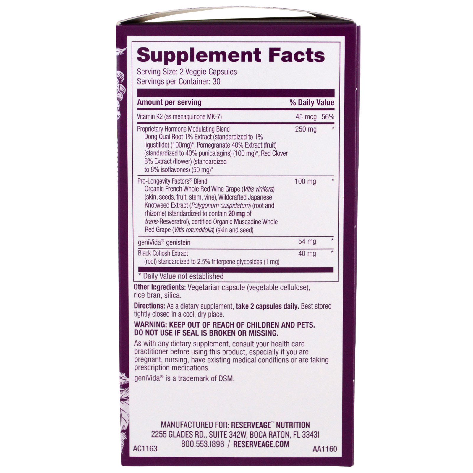 ReserveAge Nutrition, Menopause Advantage, 60 Veggie Caps