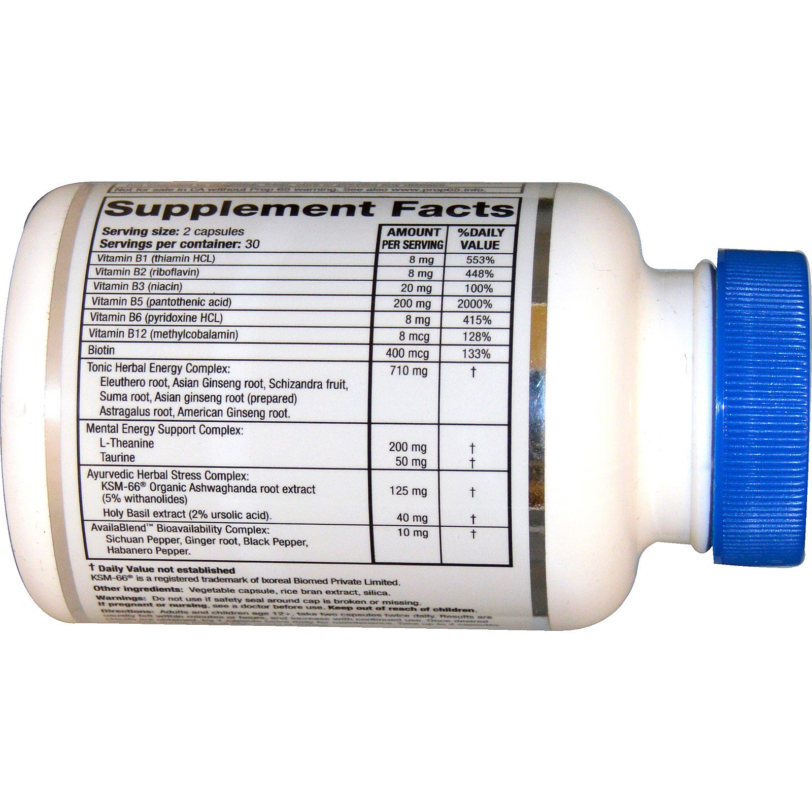 | Complexo de energia tônica à base de plantas : Raiz de Eleuthero, raiz de Ginseng asiática, fruta de Schizandra, raiz de Suma, raiz de ginseng asiática (preparada), raiz de Astragalus, raiz de Ginseng americana. |