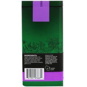 Organic roasted dendelion root, organic lemon peel, organic pu-erh tea, organic colong tea, organic cinnamon, organic ginger root, organic schizandra berries, essential geranium oil.